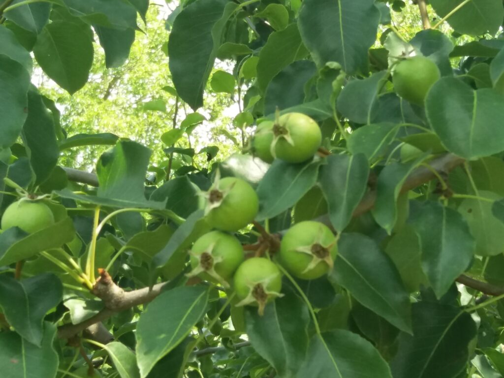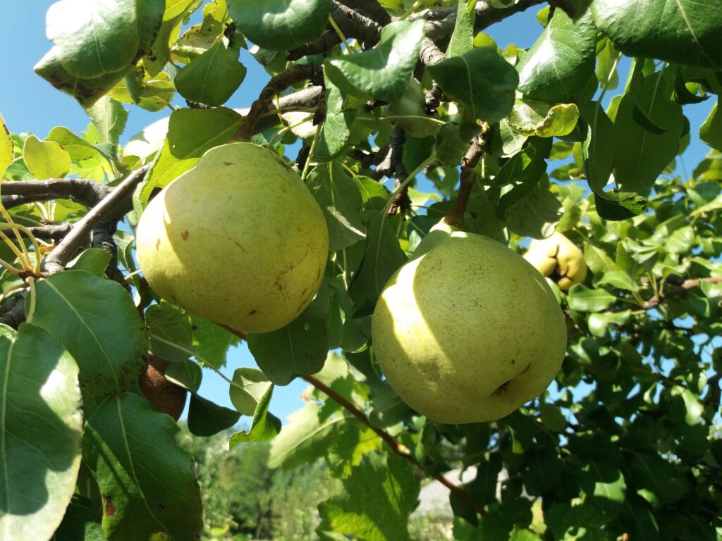 Azt még nem tudtam eldönteni, melyik vigyáz a másikra. Hajlok arra, hogy kölcsönös. Nyári érésű, közepes gyümölcsnagyságú, napos oldalon leheletnyi piros fedőszínnel festett hébérkörte.