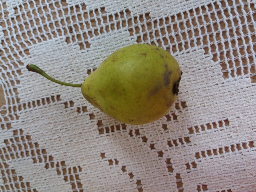 Apró ízletes gyümölcsű, mely a szotyósodás előtt kissé lisztesedik. Leoltott fáján szabad állásban a gyümölcsmérete is megugrott nálam. Azon fajtáim közé tartozik, ami vadkörte alanyon is korán termőre fordul. Erősen hajazok arra, hogy kompótként is meg kellene kóstolni.